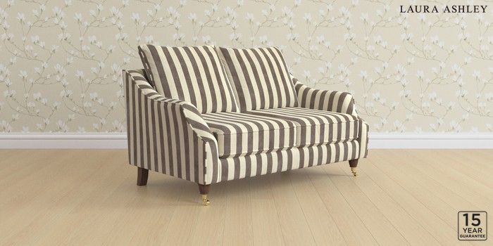7.3.1 Buy Beverley by Laura Ashley 2 Seater Sofa Orla Stripe Dark Truffle Natural Low Brass Castor - Chestnut from the Next UK online shop Click here to use our accessible website