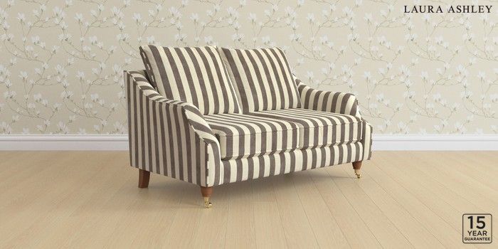 7.3.1 Buy Beverley by Laura Ashley 2 Seater Sofa Orla Stripe Dark Truffle Natural Low Brass Castor - Teak from the Next UK online shop Click here to use our accessible website