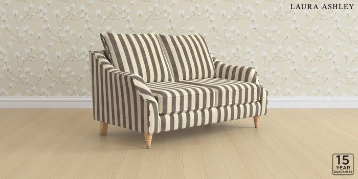 7.3.1 Buy Beverley by Laura Ashley 2 Seater Sofa Orla Stripe Dark Truffle Natural Low Turned - Light Oak from the Next UK online shop Click here to use our accessible website
