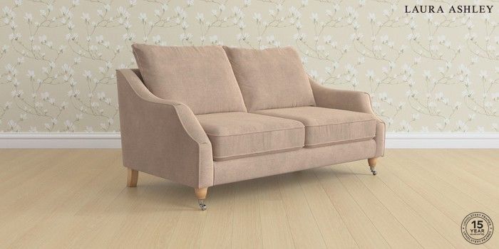 Sit back and relax in style with the elegant Laura Ashley Beverley sofa. From its flared set back sofa arm design to the pillow edged back cushions and turned polished feet, the Beverley sofa makes an excellent addition to any living space. Foam seat cushions with soft foam toppers offer comfort, support, and ease of maintenance. The feet are available with or without brass or chrome castors for a personalised finish.