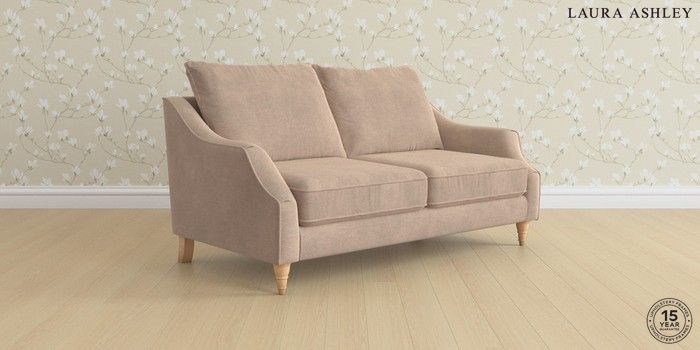 7.2.6 Buy Beverley by Laura Ashley 3 Seater Small Sofa Ailsworth Mink Natural Low Turned - Light Oak from the Next UK online shop Click here to use our accessible website