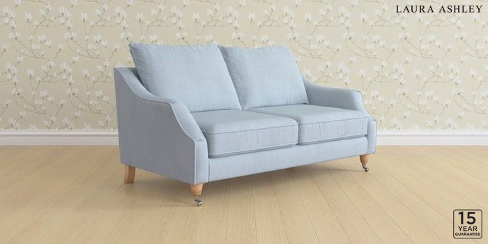 6.12.1 Buy Beverley by Laura Ashley 3 Seater Small Sofa Ailsworth Newport Blue Low Chrome Castor - Light Oak from the Next UK online shop Click here to use our accessible website
