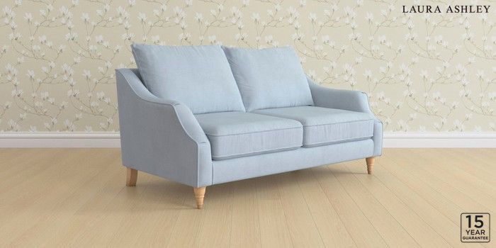 6.12.1 Buy Beverley by Laura Ashley 3 Seater Small Sofa Ailsworth Newport Blue Low Turned - Light Oak from the Next UK online shop Click here to use our accessible website