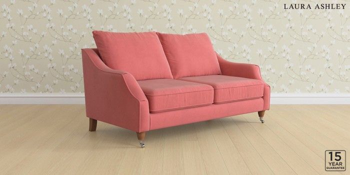 6.12.1 Buy Beverley by Laura Ashley 3 Seater Small Sofa Ailsworth Old Rose Pink Low Chrome Castor - Teak from the Next UK online shop Click here to use our accessible website