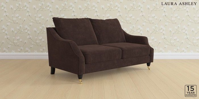 7.3.1 Buy Beverley by Laura Ashley 3 Seater Small Sofa Alwyn Velvet Chocolate Brown Low Brass Castor - Black from the Next UK online shop Click here to use our accessible website