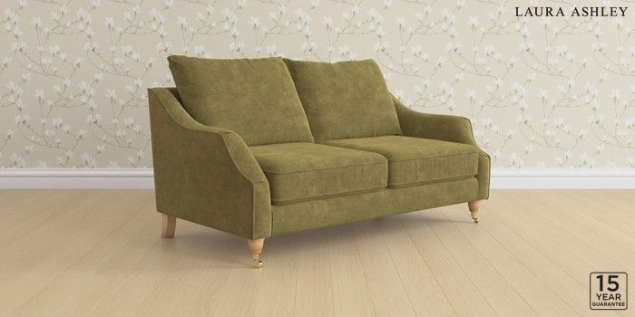 7.3.1 Buy Beverley by Laura Ashley 3 Seater Small Sofa Alwyn Velvet Olive Green Low Brass Castor - Light Oak from the Next UK online shop Click here to use our accessible website