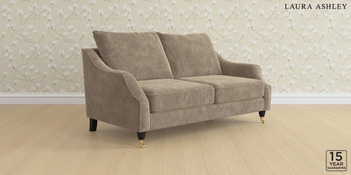 7.3.1 Buy Beverley by Laura Ashley 3 Seater Small Sofa Alwyn Velvet Truffle Natural Low Brass Castor - Black from the Next UK online shop Click here to use our accessible website