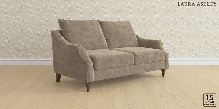 7.3.1 Buy Beverley by Laura Ashley 3 Seater Small Sofa Alwyn Velvet Truffle Natural Low Turned - Chestnut from the Next UK online shop Click here to use our accessible website