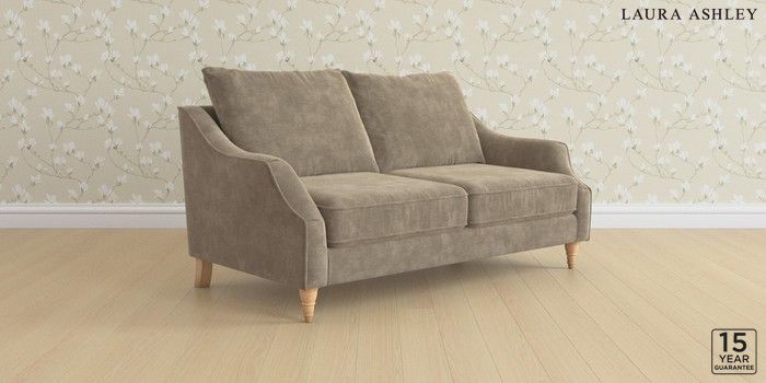 7.3.1 Buy Beverley by Laura Ashley 3 Seater Small Sofa Alwyn Velvet Truffle Natural Low Turned - Light Oak from the Next UK online shop Click here to use our accessible website