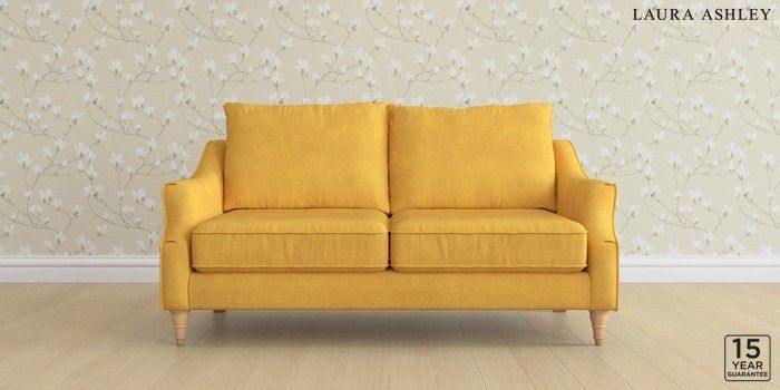 6.12.1 Buy Beverley by Laura Ashley 3 Seater Small Sofa Bainton Ochre Yellow Low Turned - Light Oak from the Next UK online shop Click here to use our accessible website