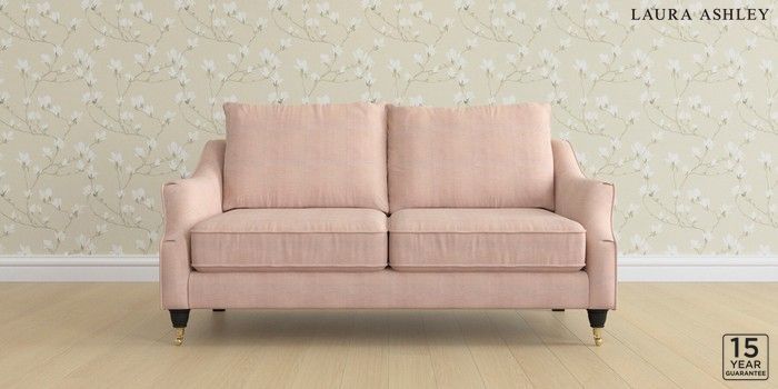 6.12.1 Buy Beverley by Laura Ashley 3 Seater Small Sofa Edwin Chenille Blush Pink Low Brass Castor - Black from the Next UK online shop Click here to use our accessible website