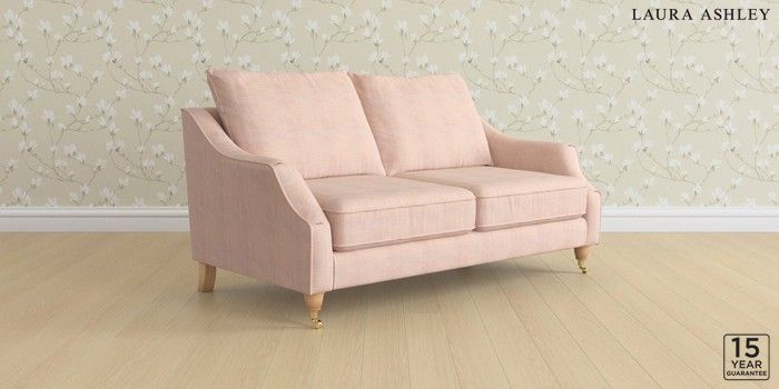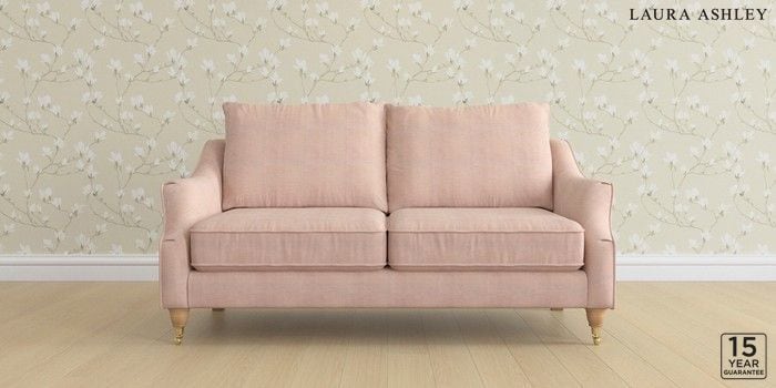 6.12.1 Buy Beverley by Laura Ashley 3 Seater Small Sofa Edwin Chenille Blush Pink Low Brass Castor - Light Oak from the Next UK online shop Click here to use our accessible website