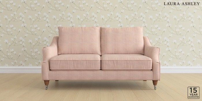 6.12.1 Buy Beverley by Laura Ashley 3 Seater Small Sofa Edwin Chenille Blush Pink Low Chrome Castor - Teak from the Next UK online shop Click here to use our accessible website