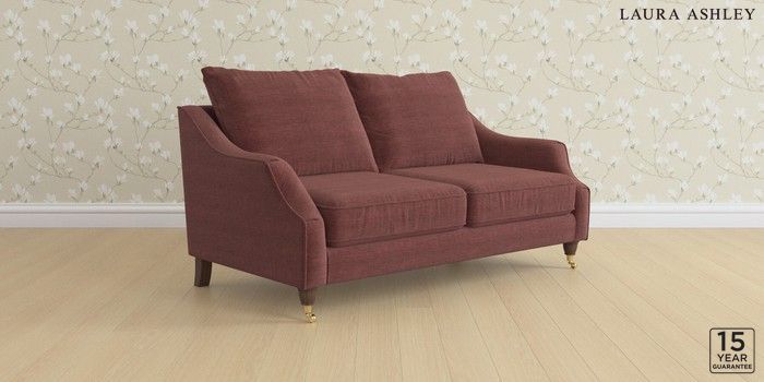 7.3.1 Buy Beverley by Laura Ashley 3 Seater Small Sofa Edwin Chenille Burgundy Red Low Brass Castor - Chestnut from the Next UK online shop Click here to use our accessible website