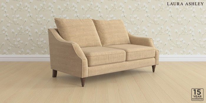 7.3.1 Buy Beverley by Laura Ashley 3 Seater Small Sofa Edwin Chenille Gold Natural Low Turned - Chestnut from the Next UK online shop Click here to use our accessible website