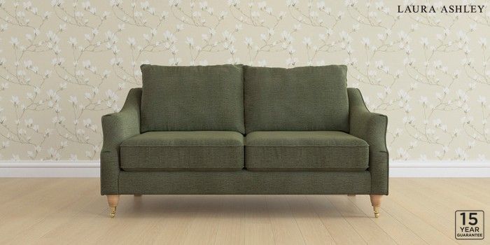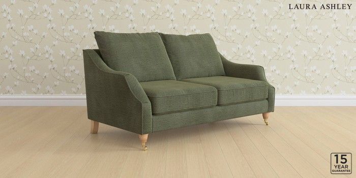6.12.1 Buy Beverley by Laura Ashley 3 Seater Small Sofa Edwin Chenille Hedgerow Green Low Brass Castor - Light Oak from the Next UK online shop Click here to use our accessible website