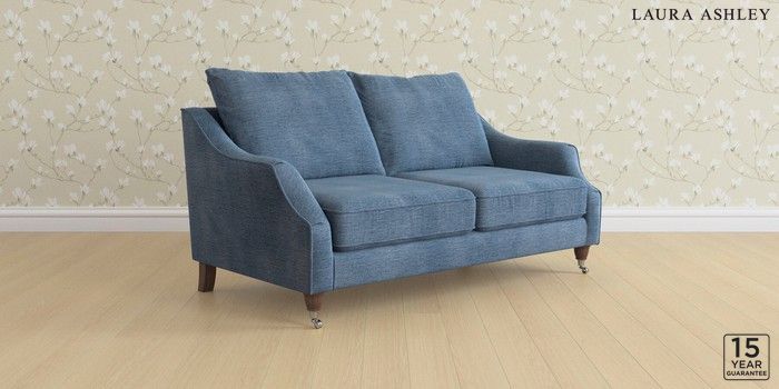 6.12.1 Buy Beverley by Laura Ashley 3 Seater Small Sofa Edwin Chenille Seaspray Blue Low Chrome Castor - Chestnut from the Next UK online shop Click here to use our accessible website