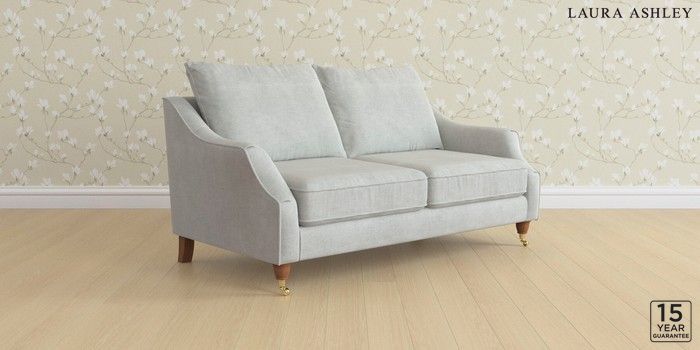 6.12.1 Buy Beverley by Laura Ashley 3 Seater Small Sofa Edwin Chenille Silver Grey Low Brass Castor - Teak from the Next UK online shop Click here to use our accessible website