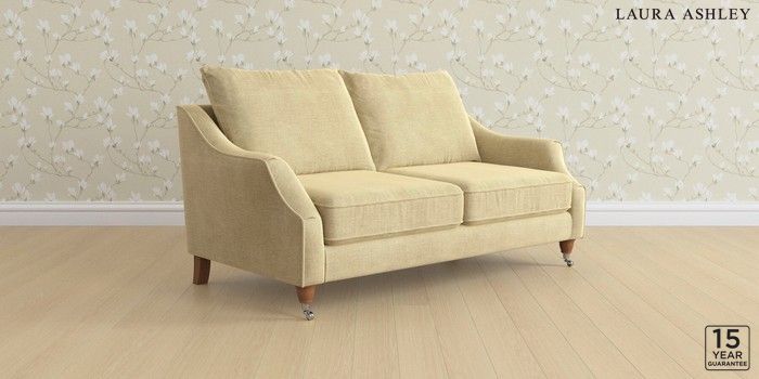 6.12.1 Buy Beverley by Laura Ashley 3 Seater Small Sofa Edwin Chenille Truffle Natural Low Chrome Castor - Teak from the Next UK online shop Click here to use our accessible website
