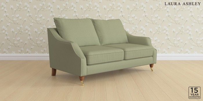 6.12.1 Buy Beverley by Laura Ashley 3 Seater Small Sofa Edwin Herringbone Hedgerow Green Low Brass Castor - Teak from the Next UK online shop Click here to use our accessible website