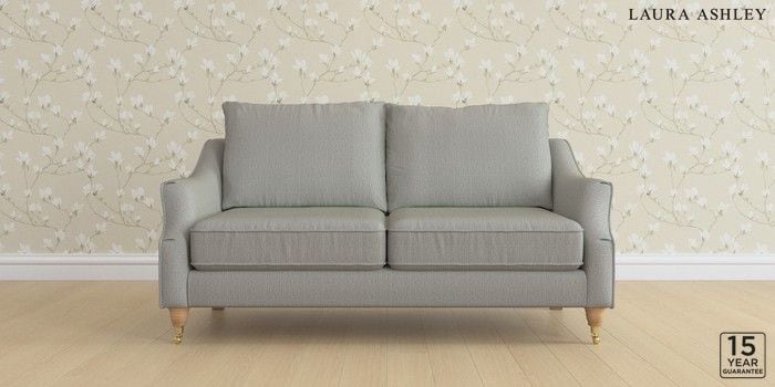 6.12.1 Buy Beverley by Laura Ashley 3 Seater Small Sofa Edwin Herringbone Pale Steel Grey Low Brass Castor - Light Oak from the Next UK online shop Click here to use our accessible website