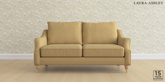 6.12.1 Buy Beverley by Laura Ashley 3 Seater Small Sofa Kinsham Ochre Yellow Low Brass Castor - Light Oak from the Next UK online shop Click here to use our accessible website