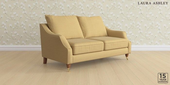 7.3.1 Buy Beverley by Laura Ashley 3 Seater Small Sofa Kinsham Ochre Yellow Low Brass Castor - Teak from the Next UK online shop Click here to use our accessible website