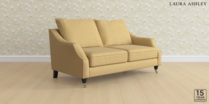 7.3.1 Buy Beverley by Laura Ashley 3 Seater Small Sofa Kinsham Ochre Yellow Low Chrome Castor - Black from the Next UK online shop Click here to use our accessible website