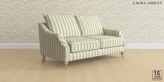 7.3.1 Buy Beverley by Laura Ashley 3 Seater Small Sofa Kinsham Stripe Hedgerow Green Low Brass Castor - Light Oak from the Next UK online shop Click here to use our accessible website
