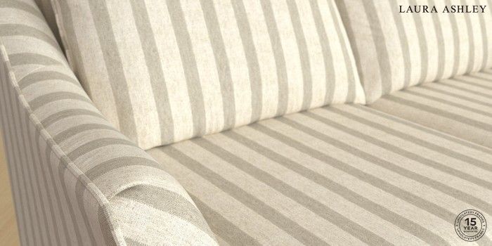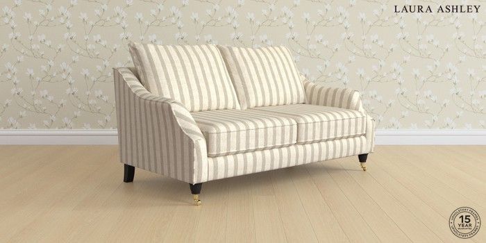 7.2.6 Buy Beverley by Laura Ashley 3 Seater Small Sofa Kinsham Stripe Natural Low Brass Castor - Black from the Next UK online shop Click here to use our accessible website
