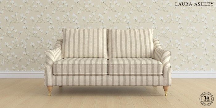 6.12.1 Buy Beverley by Laura Ashley 3 Seater Small Sofa Kinsham Stripe Natural Low Brass Castor - Light Oak from the Next UK online shop Click here to use our accessible website