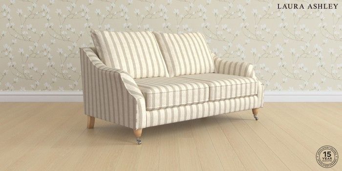 7.2.6 Buy Beverley by Laura Ashley 3 Seater Small Sofa Kinsham Stripe Natural Low Chrome Castor - Light Oak from the Next UK online shop Click here to use our accessible website