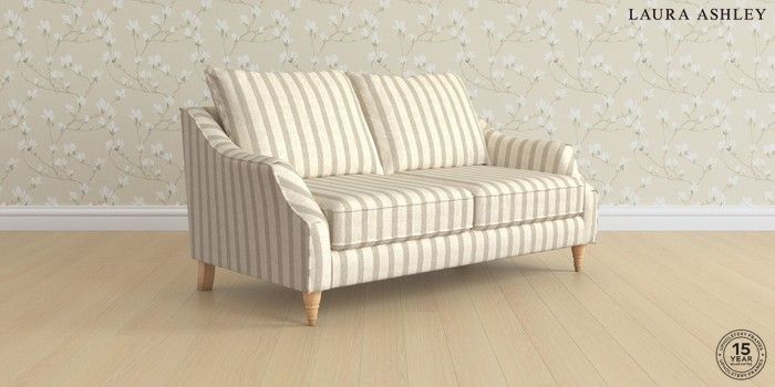 7.2.6 Buy Beverley by Laura Ashley 3 Seater Small Sofa Kinsham Stripe Natural Low Turned - Light Oak from the Next UK online shop Click here to use our accessible website