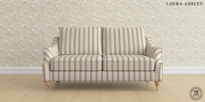 6.12.1 Buy Beverley by Laura Ashley 3 Seater Small Sofa Kinsham Stripe Seaspray Blue Low Brass Castor - Light Oak from the Next UK online shop Click here to use our accessible website