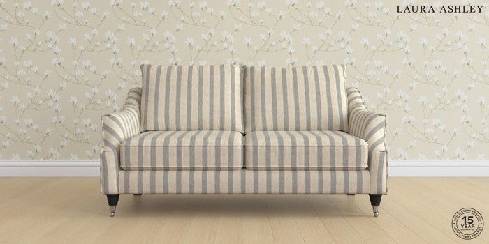 6.12.1 Buy Beverley by Laura Ashley 3 Seater Small Sofa Kinsham Stripe Seaspray Blue Low Chrome Castor - Black from the Next UK online shop Click here to use our accessible website