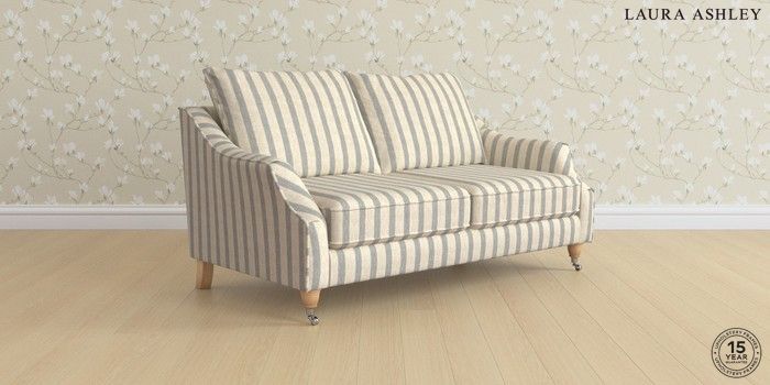 Sit back and relax in style with the elegant Laura Ashley Beverley sofa. From its flared set back sofa arm design to the pillow edged back cushions and turned polished feet, the Beverley sofa makes an excellent addition to any living space. Foam seat cushions with soft foam toppers offer comfort, support, and ease of maintenance. The feet are available with or without brass or chrome castors for a personalised finish.