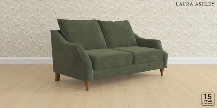 7.3.1 Buy Beverley by Laura Ashley 3 Seater Small Sofa Lundar Chenille Ivy Green Low Turned - Teak from the Next UK online shop Click here to use our accessible website
