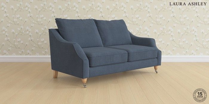 7.2.6 Buy Beverley by Laura Ashley 3 Seater Small Sofa Lundar Chenille Navy Blue Low Chrome Castor - Light Oak from the Next UK online shop Click here to use our accessible website