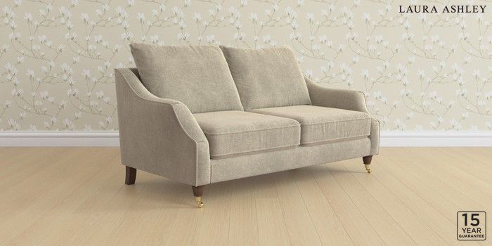 7.3.1 Buy Beverley by Laura Ashley 3 Seater Small Sofa Lundar Chenille Truffle Natural Low Brass Castor - Chestnut from the Next UK online shop Click here to use our accessible website
