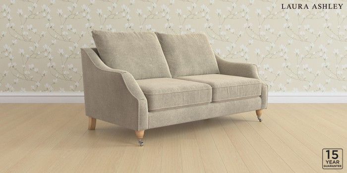 7.3.1 Buy Beverley by Laura Ashley 3 Seater Small Sofa Lundar Chenille Truffle Natural Low Chrome Castor - Light Oak from the Next UK online shop Click here to use our accessible website