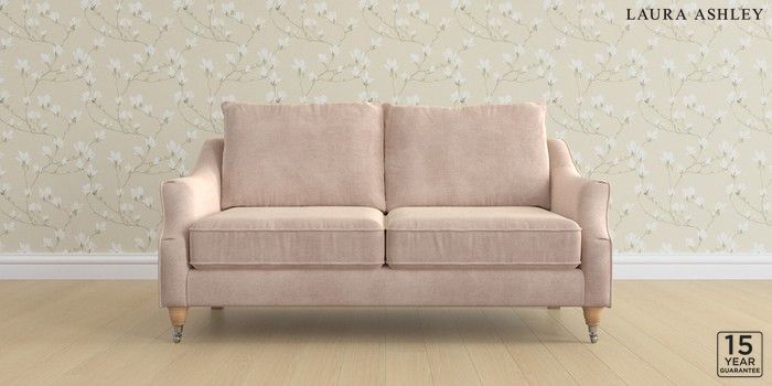 6.12.1 Buy Beverley by Laura Ashley 3 Seater Small Sofa Orla Chalk Pink Low Chrome Castor - Light Oak from the Next UK online shop Click here to use our accessible website