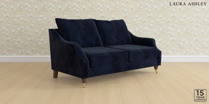 6.12.1 Buy Beverley by Laura Ashley 3 Seater Small Sofa Orla Midnight Navy Low Brass Castor - Chestnut from the Next UK online shop Click here to use our accessible website