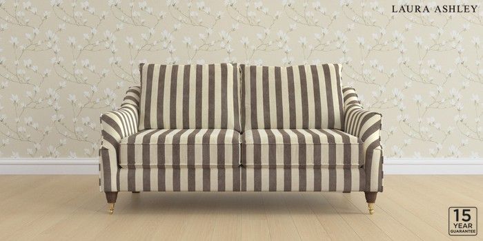 6.12.1 Buy Beverley by Laura Ashley 3 Seater Small Sofa Orla Stripe Dark Truffle Natural Low Brass Castor - Chestnut from the Next UK online shop Click here to use our accessible website