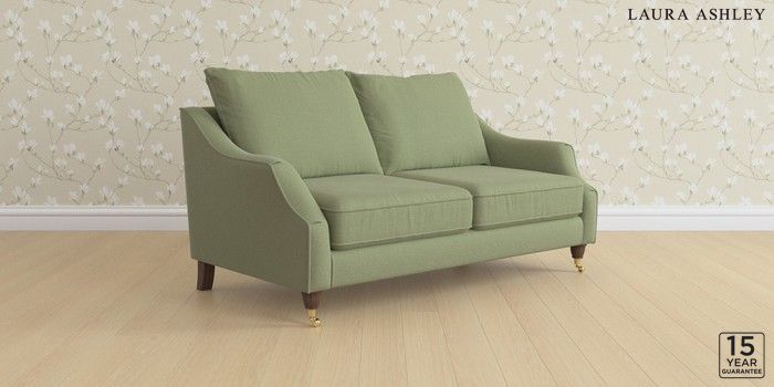 6.12.1 Buy Beverley by Laura Ashley 3 Seater Small Sofa Peyton Hedgerow Green Low Brass Castor - Chestnut from the Next UK online shop Click here to use our accessible website