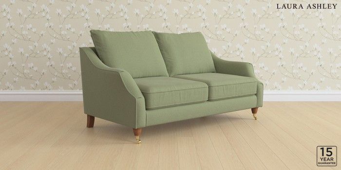 6.12.1 Buy Beverley by Laura Ashley 3 Seater Small Sofa Peyton Hedgerow Green Low Brass Castor - Teak from the Next UK online shop Click here to use our accessible website