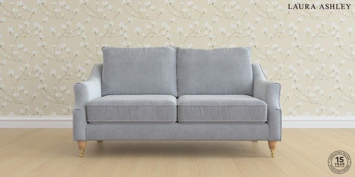 6.12.1 Buy Beverley by Laura Ashley 3 Seater Small Sofa Peyton Powder Blue Low Brass Castor - Light Oak from the Next UK online shop Click here to use our accessible website