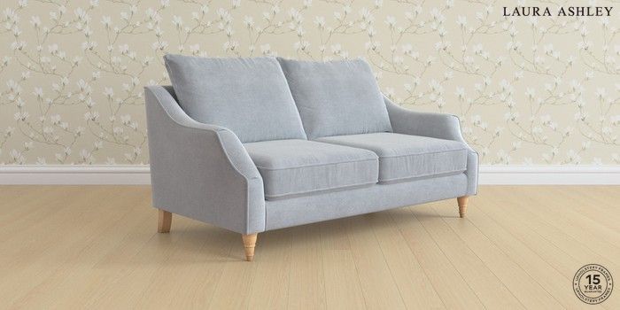 7.2.6 Buy Beverley by Laura Ashley 3 Seater Small Sofa Peyton Powder Blue Low Turned - Light Oak from the Next UK online shop Click here to use our accessible website