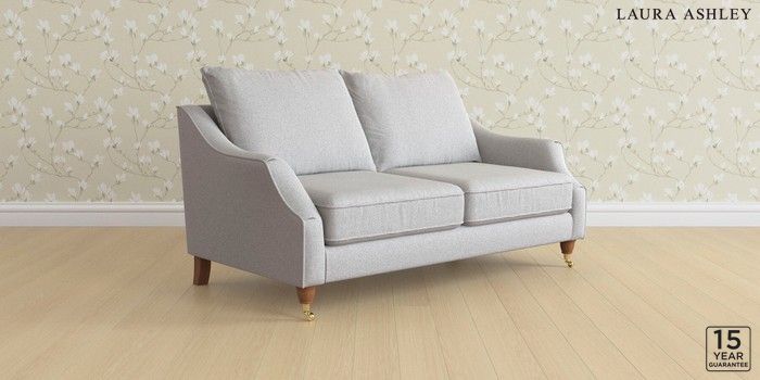 7.3.1 Buy Beverley by Laura Ashley 3 Seater Small Sofa Wooton Pale Steel Grey Low Brass Castor - Teak from the Next UK online shop Click here to use our accessible website