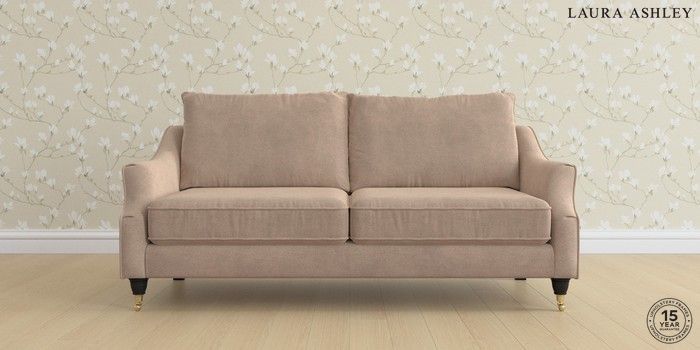 6.12.1 Buy Beverley by Laura Ashley 3 Seater Sofa Ailsworth Mink Natural Low Brass Castor - Black from the Next UK online shop Click here to use our accessible website