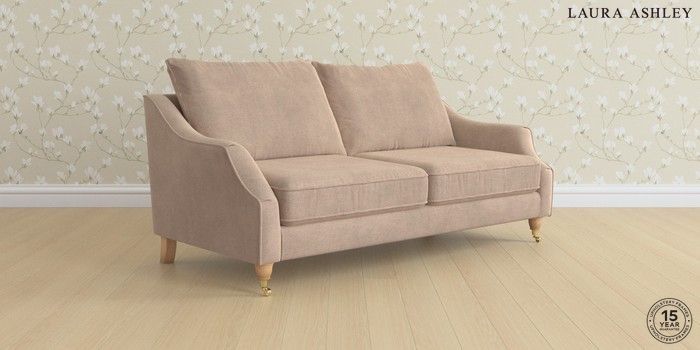 7.2.6 Buy Beverley by Laura Ashley 3 Seater Sofa Ailsworth Mink Natural Low Brass Castor - Light Oak from the Next UK online shop Click here to use our accessible website